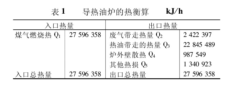 導(dǎo)熱油爐的熱平衡算見(jiàn)表1